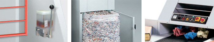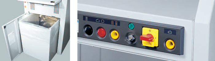 An automatic shut-off function if the bag is full and an electronic door switch ensure that the paper shreds are removed safely and easily from the shred exit area.